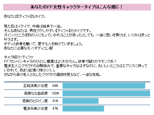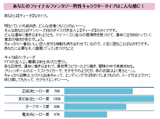 まず、自分をFFキャラに例えると・・・という占い。